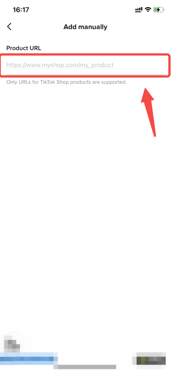 Step 1: Once you receive the link, go to TikTok Shop, tap Add Product, then tap the link icon in the top right. Paste the link into the Product URL field.