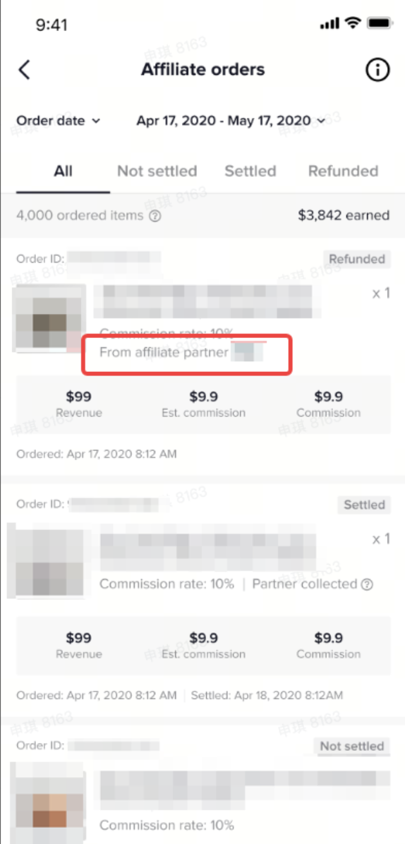 Step 6: In the Affiliate orders page, you will be shown when a sale and commission is from an agency-led campaign.