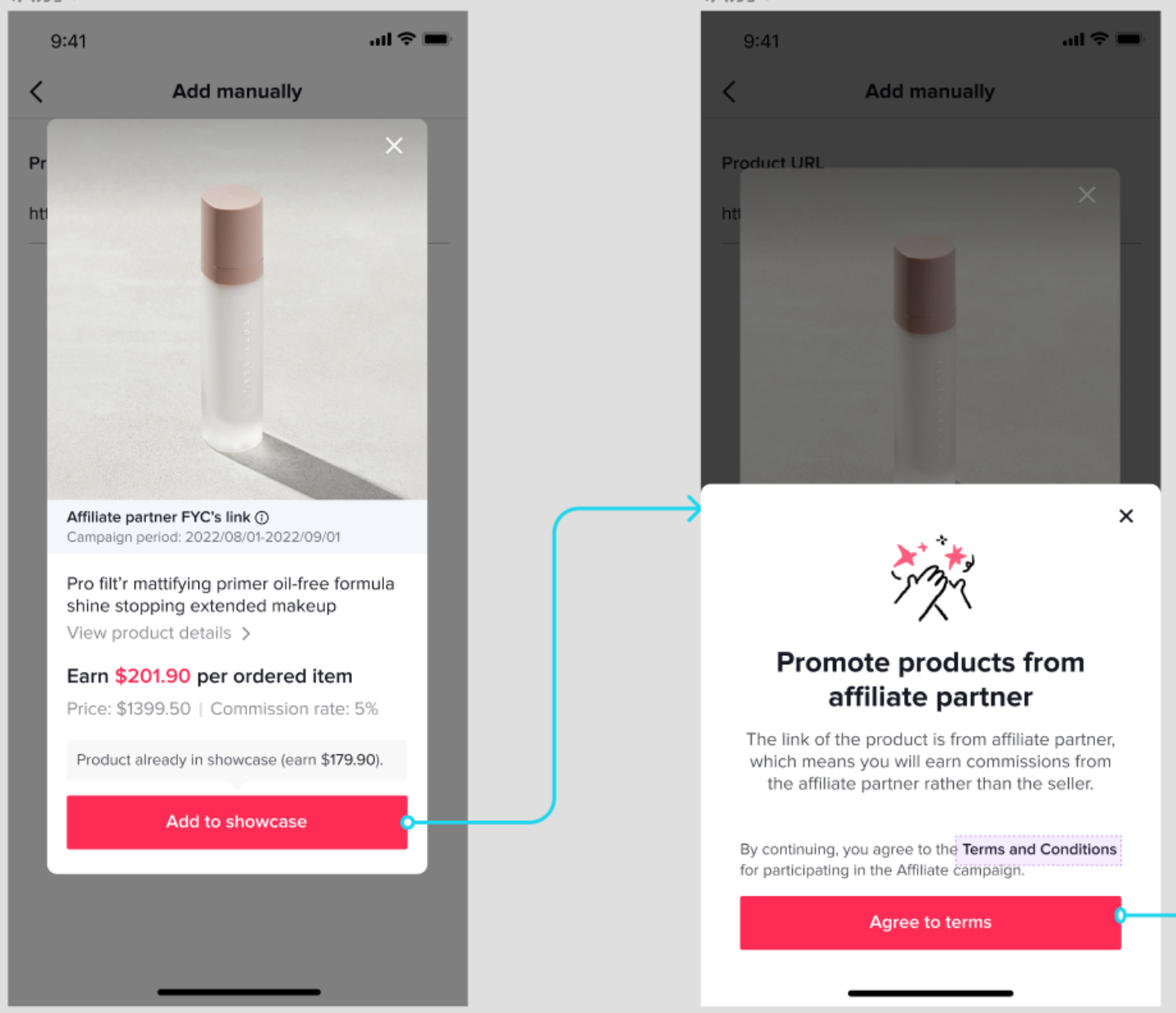 Step 2: Once you open the product link, tap Add to Showcase and agree to the terms and conditions to join the affiliate campaign.