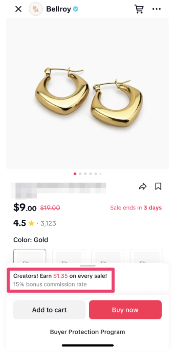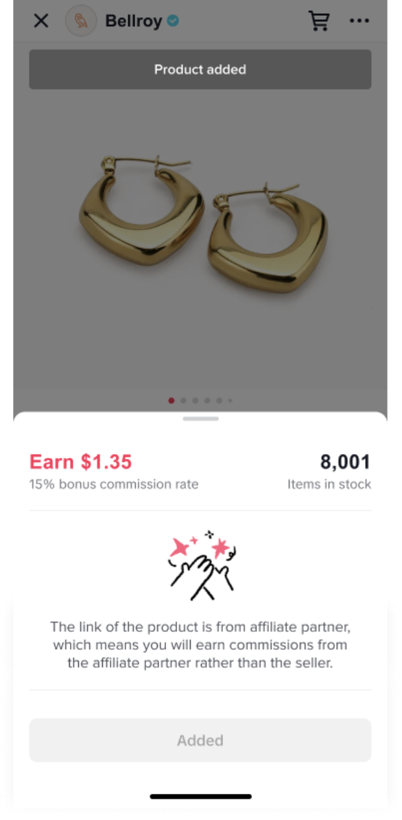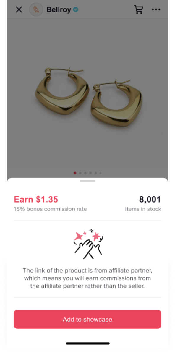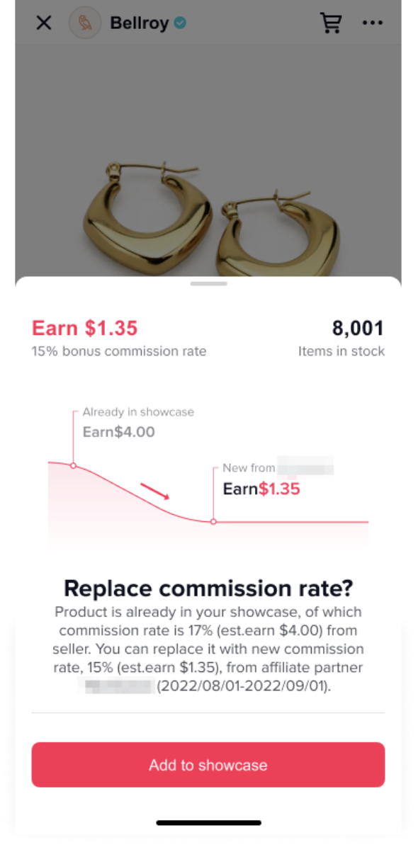 Step 4: If the commission in this campaign is lower than what you’re currently earning for a product, you’ll see a warning that your commission will decrease before adding it to your showcase.